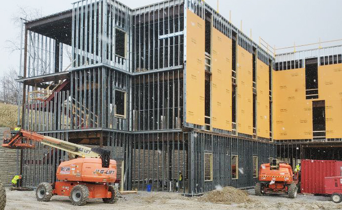 Noise Attenuation: Gypsum Sheathing can be a component material in a number of sound control assemblies developed to dissipate the energy of sound vibrations within a multi-family structure.